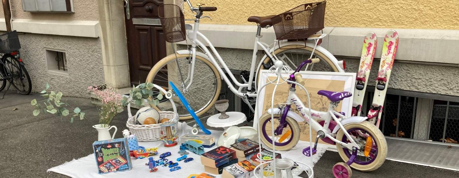 Ein lebendiges Quartierfest im Breitsch mit Garagen-Flohmarkt, lokalen Ladenangeboten und Verpflegung.